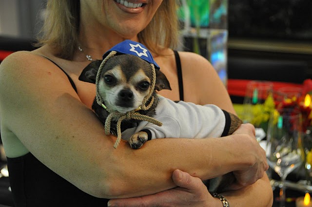 So my folks are as much into dressing up our pet pooch as I am. I just had to share our little dog Oliver’s get-up for Rosh Hashana. Enjoy!