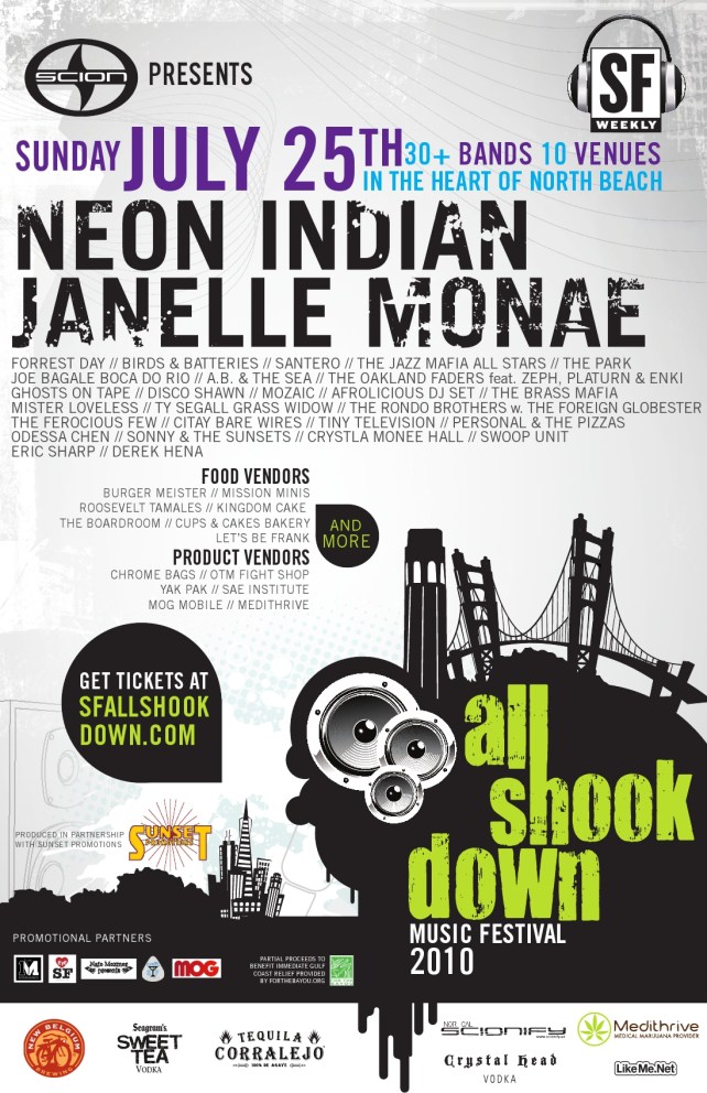 With the suggestions of our Music Editor, Sunset Promotions was able to book a great selection of local acts. For our 2 national headliners, we were able to book the upcoming soul-funkstress Janelle Monae and the hypnotizing yet edgy Neon Indian. Both put on incredible performances!